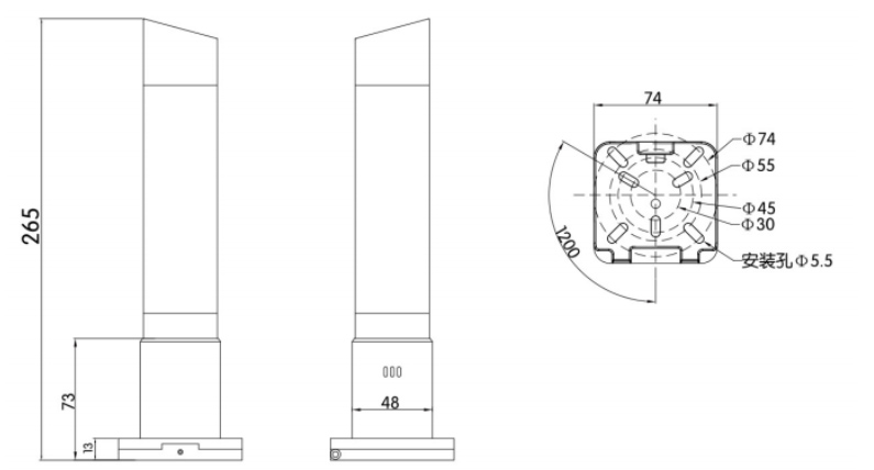 • 万能安装底座,可适应多种安装尺寸。
